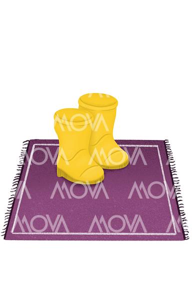 Żółte kalosze stoją na dywanie.jpg